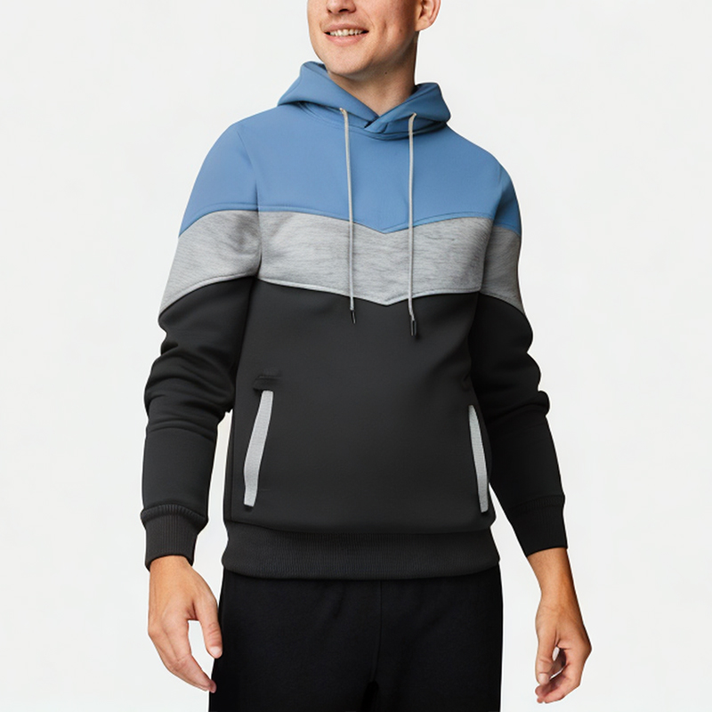 Men’s Three-Color Stitching Hooded Sweatshirt