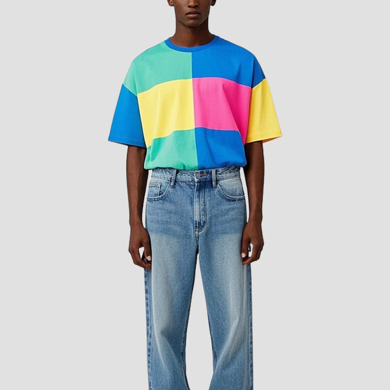 Contrast Color Splicing Personality Fashion Men’s Short-Sleeves