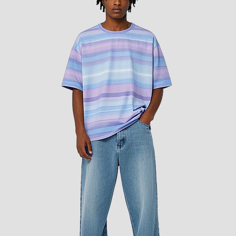 Gradient Stripes Casual Energetic Men’s Short-Sleeves