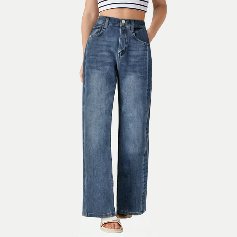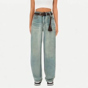 Classic Buttons: The button closure design shows a retro style, which can increase the convenience of wearing and taking off, and enhance the fashion sense of the pants.The color and material (metal) of the buttons echo the style of the overall jeans, strengthening the overall design of the pants.