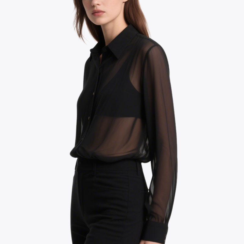This women’s long-sleeved shirt is a wardrobe classic, combining practicality and style. Made from comfortable, skin-friendly fabric, it fits snugly without being constricting, ensuring a comfortable and relaxed feel. The classic lapel design creates a clean, defined neckline. Paired with long sleeves, it’s perfect for wearing alone in spring and autumn, or as a layer in winter, adapting to a variety of seasons and outfits.