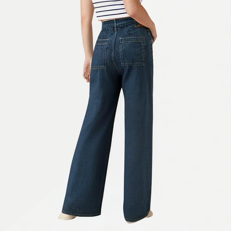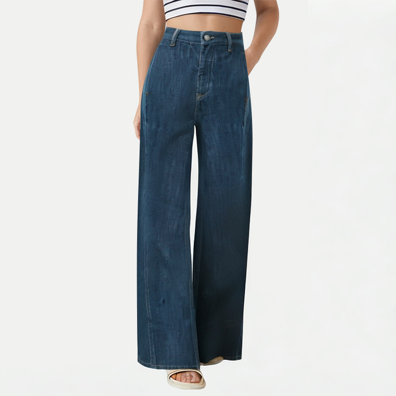 High street chick style: high waist and wide leg cut with minimalist details exude a cool and confident fashion attitude.
