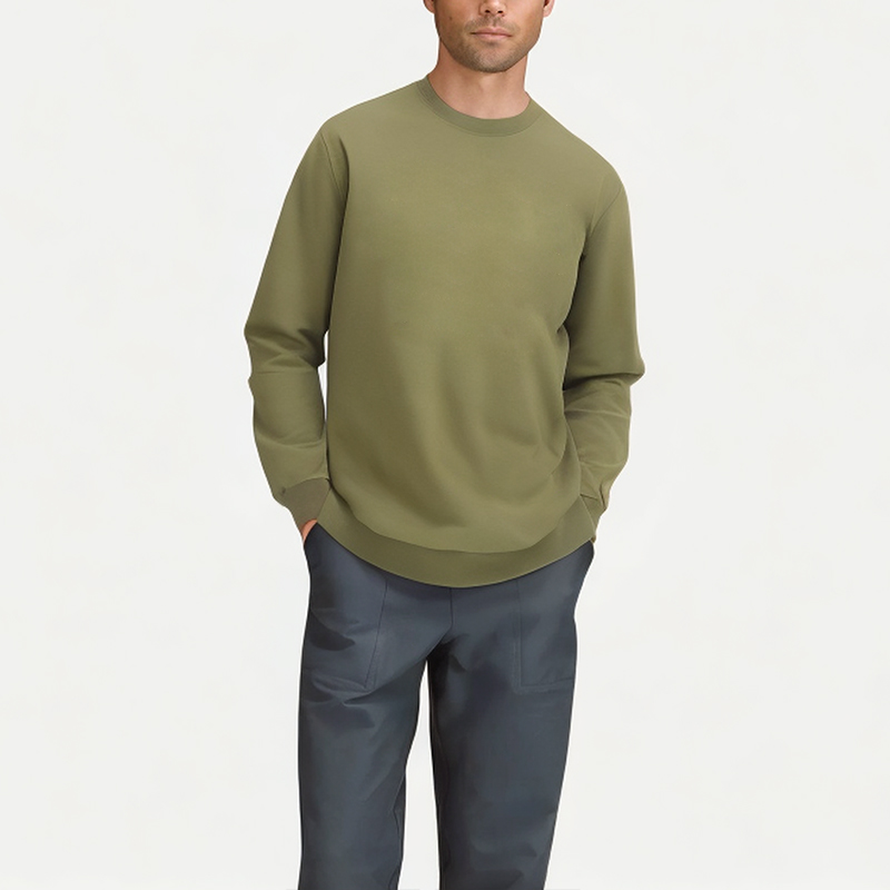 French Loop Woven Technology: The inside of the loop woven fabric is soft and fluffy, comfortable to touch and has excellent warmth retention performance. The outer layer has a tight texture and presents a matte effect with a delicate texture. The fabric is flexible and elastic, and it is not easy to deform after long-term wear. It is suitable for daily activities and light sports scenes.