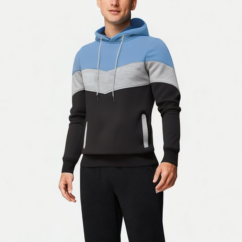 Men’s Three-Color Stitching Hooded Sweatshirt