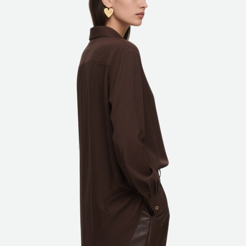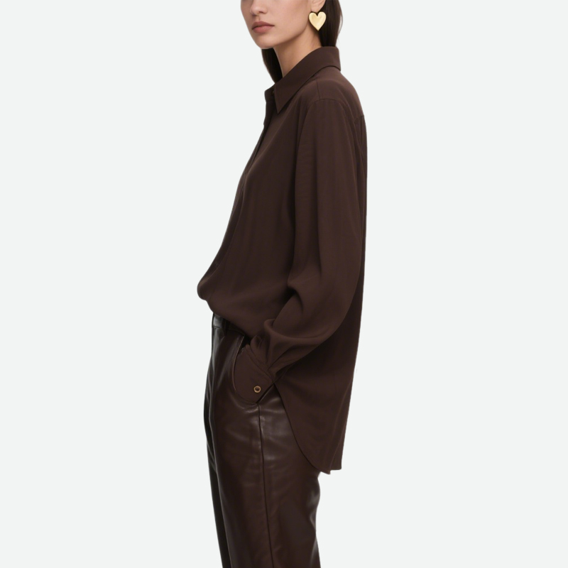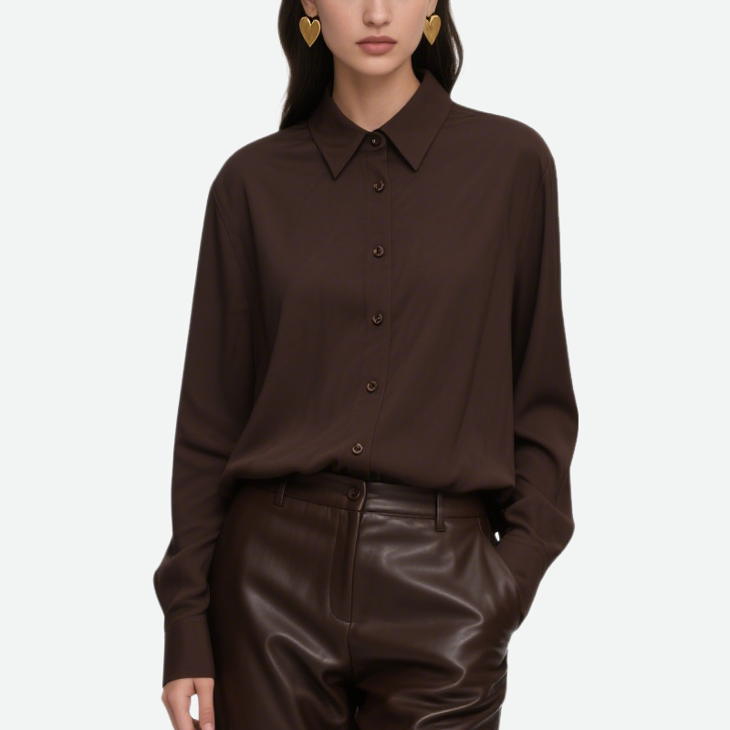 This women’s long-sleeved shirt is a wardrobe classic, combining practicality and style. Made from comfortable, skin-friendly fabric, it fits snugly without being constricting, ensuring a comfortable and relaxed feel. The classic lapel design creates a clean, defined neckline. Paired with long sleeves, it’s perfect for wearing alone in spring and autumn, or as a layer in winter, adapting to a variety of seasons and outfits.