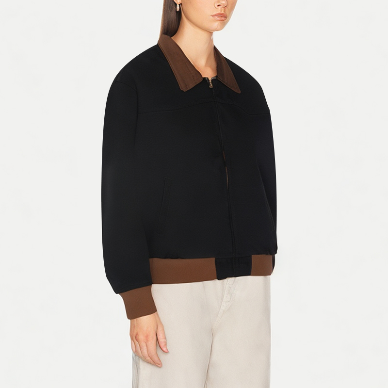 Turtleneck sweater or T-shirt: It can be paired with a turtleneck sweater or a basic T-shirt to enhance the sense of layering. At the same time, the zipper jacket is easy to adjust the temperature to meet the needs of different occasions.