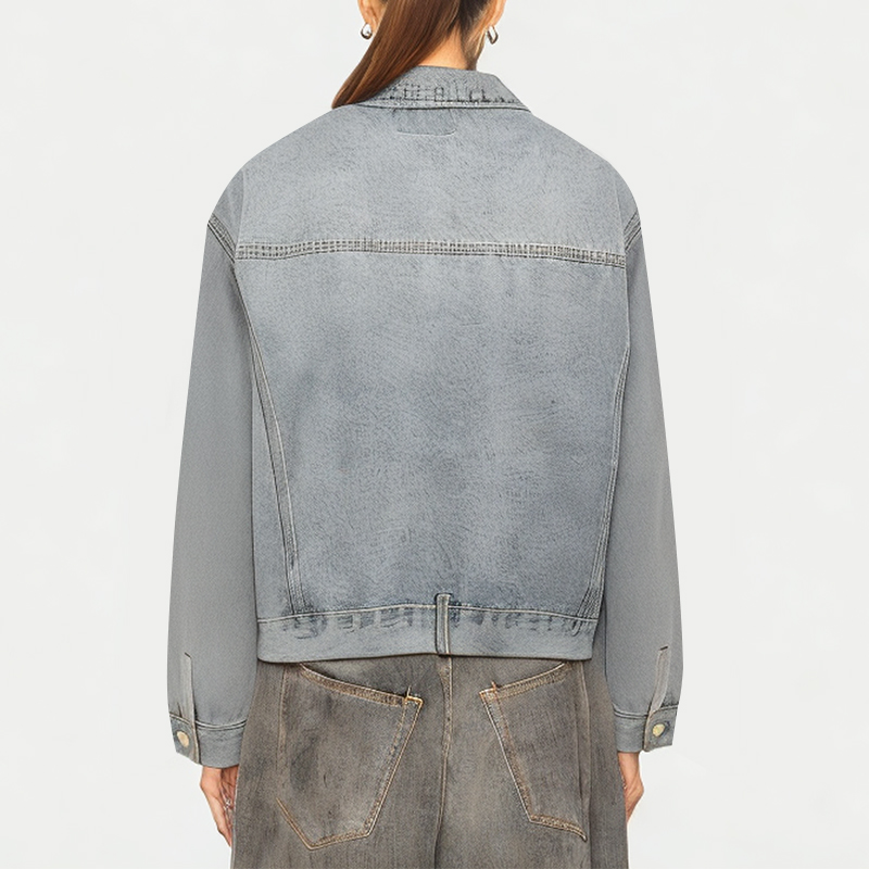 Washed design: Through the washing process, the denim jacket presents a retro and soft effect, with a slight fading feeling, which adds a unique visual layering, while enhancing the softness of the fabric and making it more comfortable to wear.