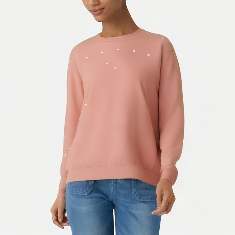 Pearl Embellishment: The exquisite pearl decoration breaks the monotony of the sweatshirt, adding elegance and feminine charm to the overall look. The embellishment position is reasonably designed, which does not affect comfort and highlights the highlights of the clothes.