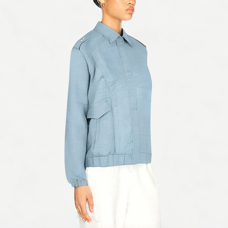 Visual effect and uniqueness: This jacket uses a texture design that imitates crocodile leather, adding a sense of luxury and unique texture effect. The crocodile leather texture injects a sense of coolness and personality into the jacket, enhancing the overall fashion texture.