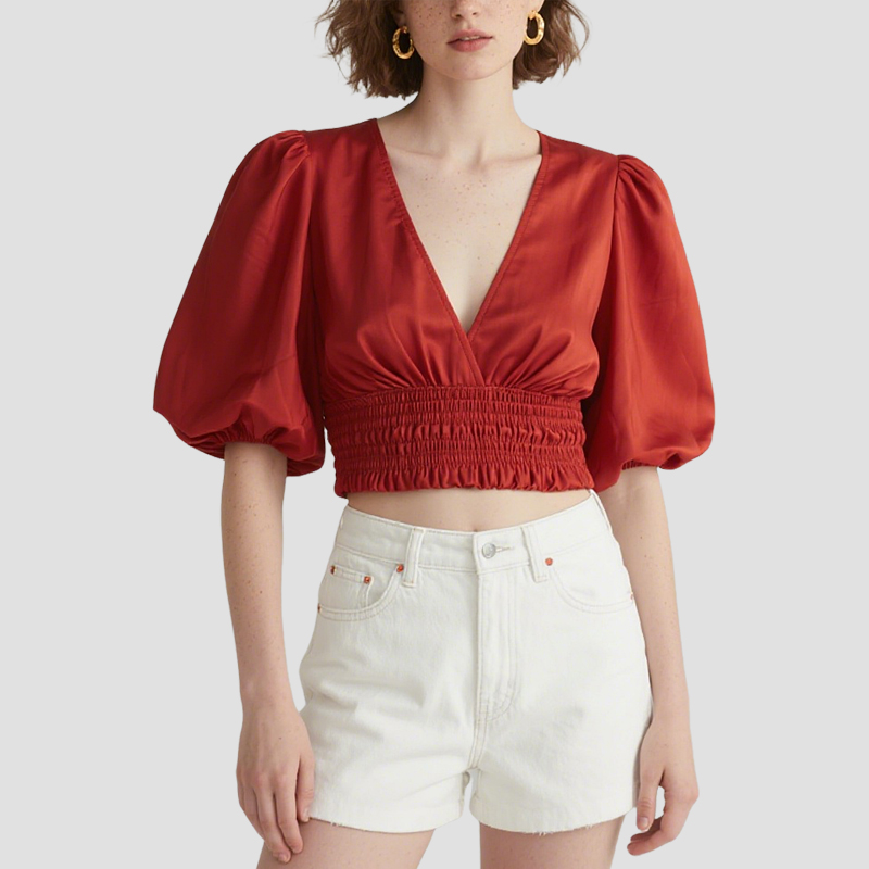 Confidently show health and vitality, paired with high-waisted bottoms (trousers, skirts), showing perfect body curves.