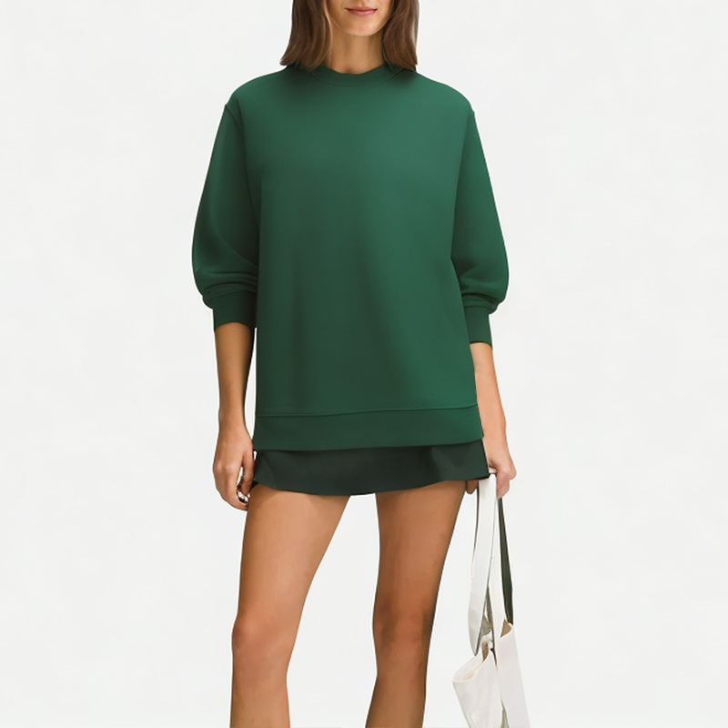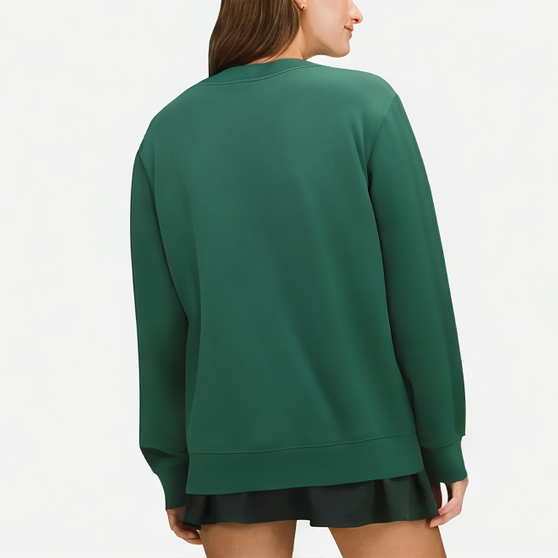 Ribbed details: The cuffs, hem and neckline are ribbed to help enhance overall warmth while preventing clothing from deforming. The ribbing adds a sense of layering to the garment, making the sweatshirt more structured.