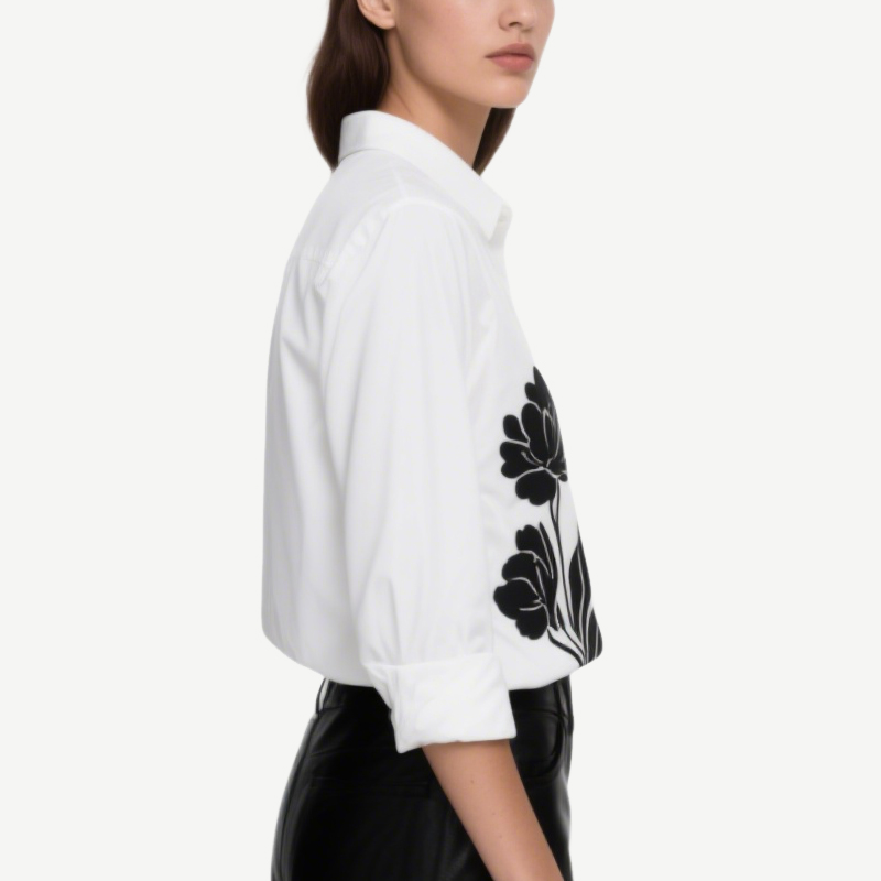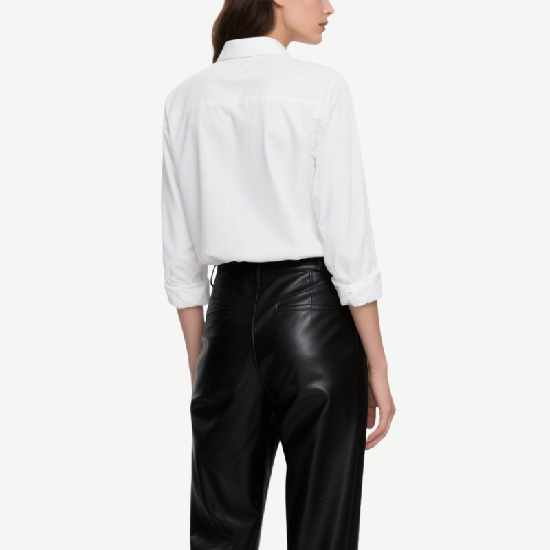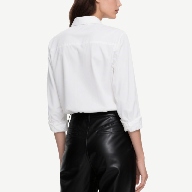 This women’s long-sleeved shirt is a wardrobe classic, combining practicality and style. Made from comfortable, skin-friendly fabric, it fits snugly without being constricting, ensuring a comfortable and relaxed feel. The classic lapel design creates a clean, defined neckline. Paired with long sleeves, it’s perfect for wearing alone in spring and autumn, or as a layer in winter, adapting to a variety of seasons and outfits.